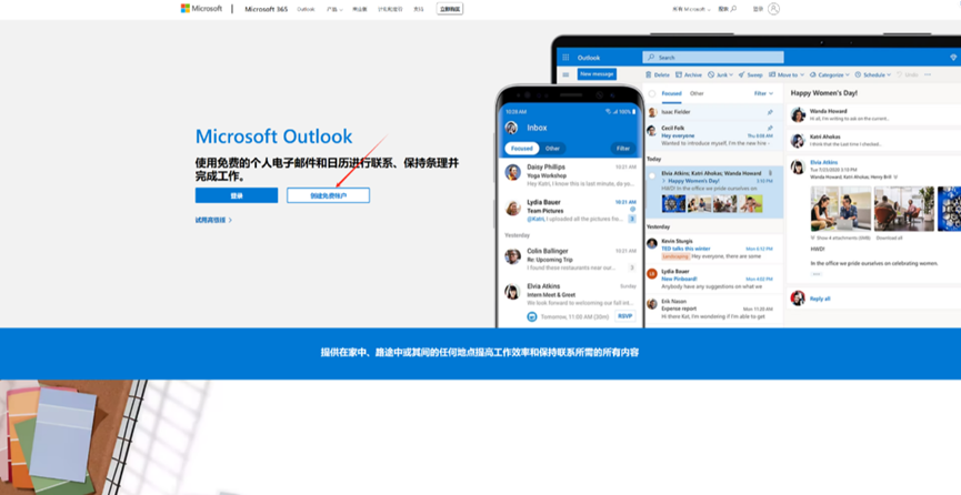 1. 访问outlook.com并选择创建一个新的免费账户。