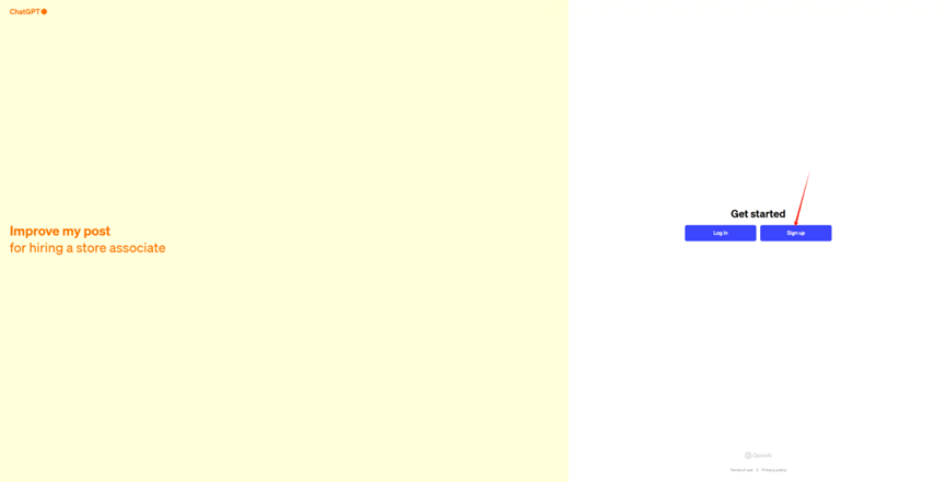 1. 打开ChatGPT官网:https://chat.openai.com,点击Sign Up.