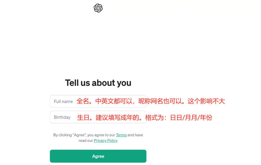 5. 点击Verify Email adress后,会自动跳转OpenAI的平台中,继续补充信息