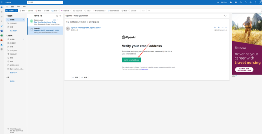 第二步:利用Outlook邮箱来完成ChatGPT账号注册