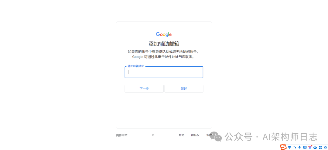 辅助邮箱直接跳过就可以