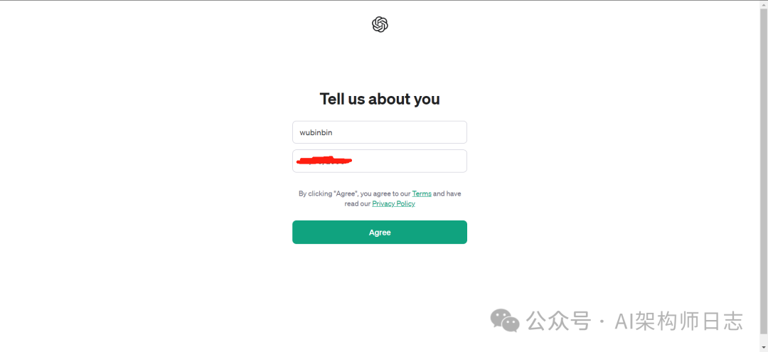 点击同意,就完事了,chatgpt就注册好了