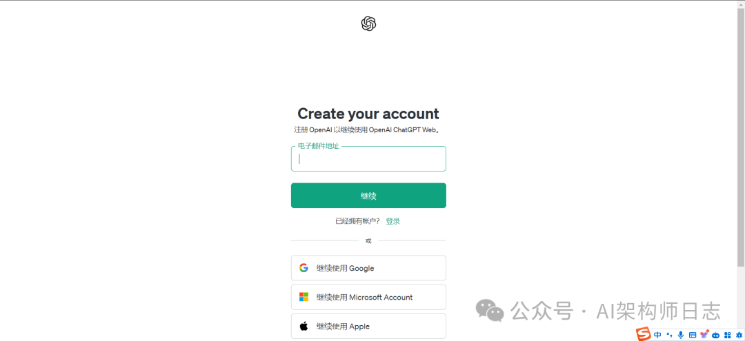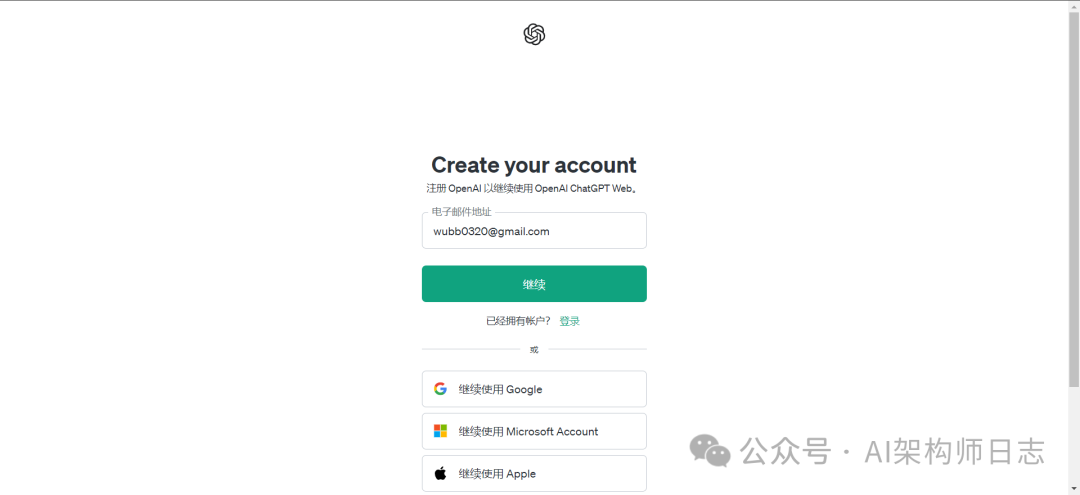 chatgpt注册方式有很多种,但是本文建议直接使用谷歌账号进行注册。如果有谷歌邮箱直接看步骤2就可以了