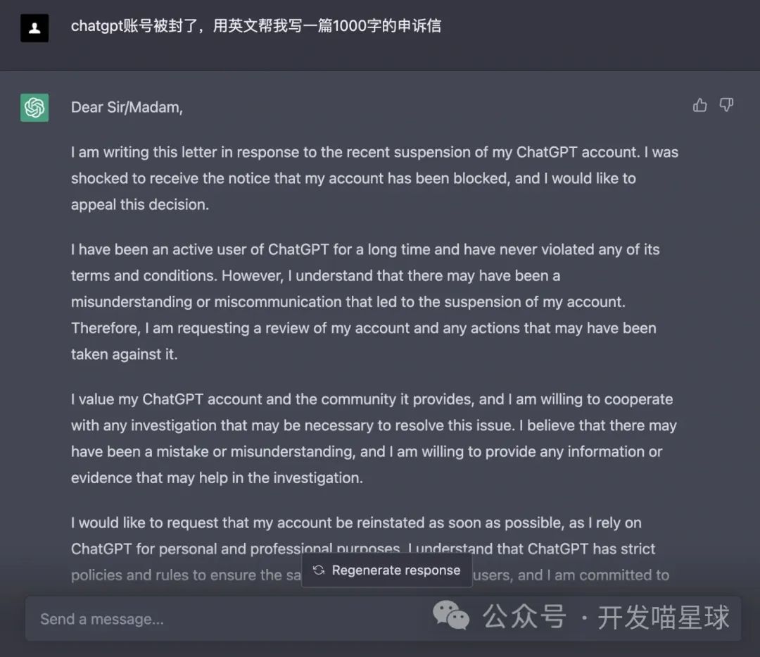 申诉信都可以用ChatGPT来帮你写: