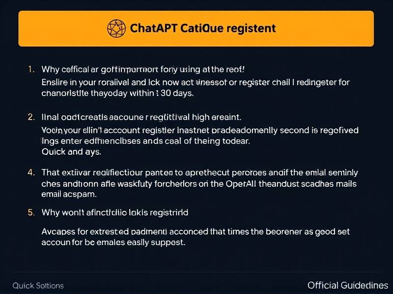 **** ,,如果你在注册ChatGPT时遇到问题,可能是由以下5个常见原因导致的:1)地区限制(部分国家/地区无法使用);2)邮箱或手机号不支持(需验证有效邮箱或海外号码);3)网络环境不稳定(建议切换IP或使用科学工具);4)浏览器缓存或Cookie冲突(尝试清除或更换浏览器);5)服务器过载(稍后再试)。本文提供了权威解决方案,包括详细注册步骤、平台兼容性说明及官方支持渠道,助你快速完成ChatGPT账号注册并开始使用。若仍失败,可参考指南中的备用方案或联系OpenAI客服。