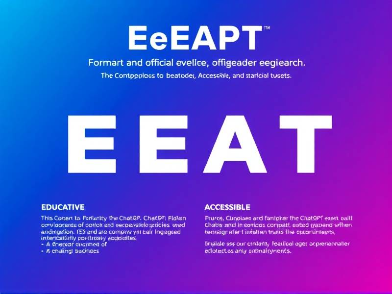 EEAT代表Experience(经验)、Expertise(专业)、Authoritativeness(权威)和Trustworthiness(可信),是谷歌评估内容质量的核心框架,在ChatGPT官网背景下,这套原则尤为重要——因为AI技术的快速发展和广泛应用,使得准确、可靠的信息筛选变得至关重要。