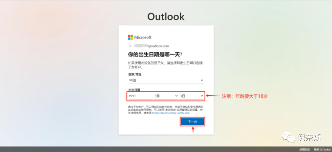6.国家选中国,填写出生日期,注意年龄要大于18岁。
