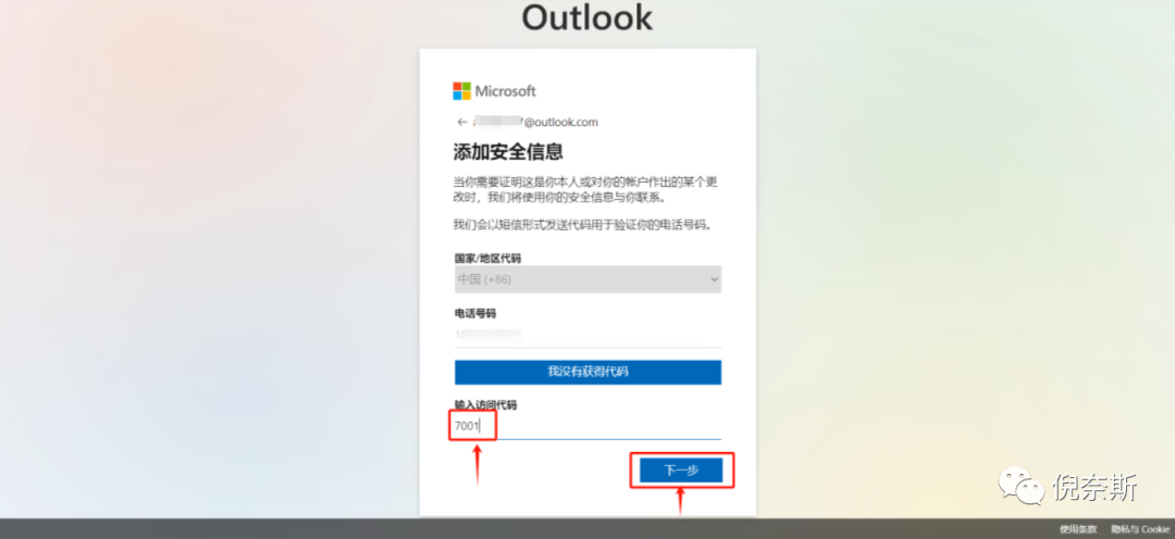 7.输入自己的手机号,接收验证码,输入验证码,点击下一步。
