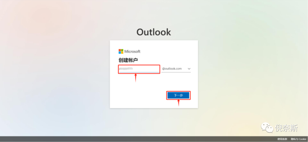 打开outlook.live.com,点击创建微软邮箱帐户。