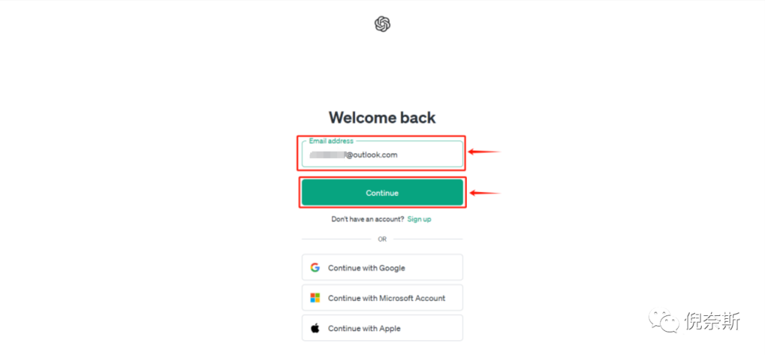 7.输入刚才注册的ChatGPT账号,点击Continue下一步。