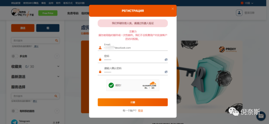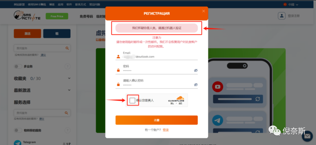 3.注册过程中可能会遇到的问题,证明自己是真人打勾就可以了。