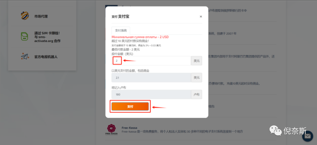 8.点击支付宝到充值界面,注意最低充2美元(≈15人民币)。