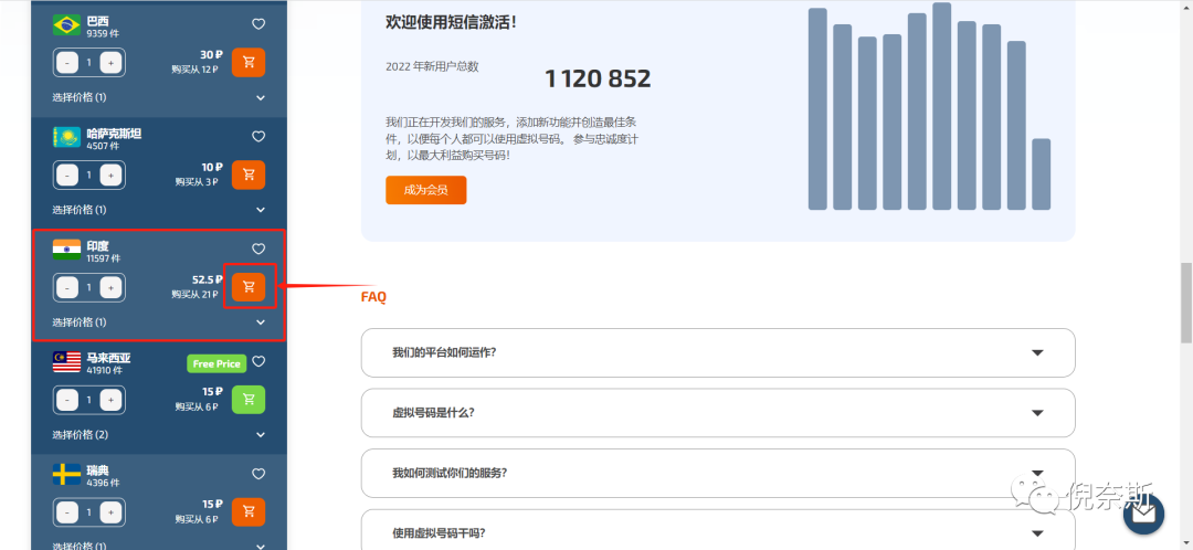 11.随便选择一个国家,我这里选择印度,点击购物车。