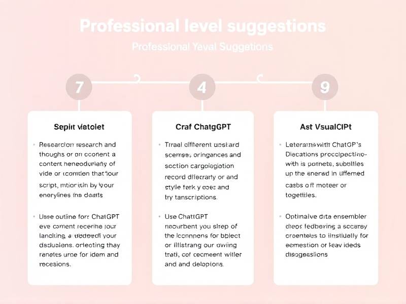 当然,以下是您所需的摘要:,,想要利用ChatGPT高效制作专业视频,只需简单五步即可实现。借助ChatGPT进行头脑风暴,生成视频主题、文案脚本及分镜头建议,奠定内容基础。根据生成的文案,选择合适的AI工具生成画外音或配音。利用AI视频生成工具(如Pictory、Synthesia等),输入脚本和指令自动创建视觉画面;亦可采用传统剪辑软件自行组合素材。之后,进行精细后期处理,添加背景音乐、音效和字幕,提升视频整体质感。全面审核成品,优化细节并导出发布。ChatGPT在此过程中核心服务于创意发想与内容生成,显著降低技术门槛,让每个人都能高效产出优质视频内容。
