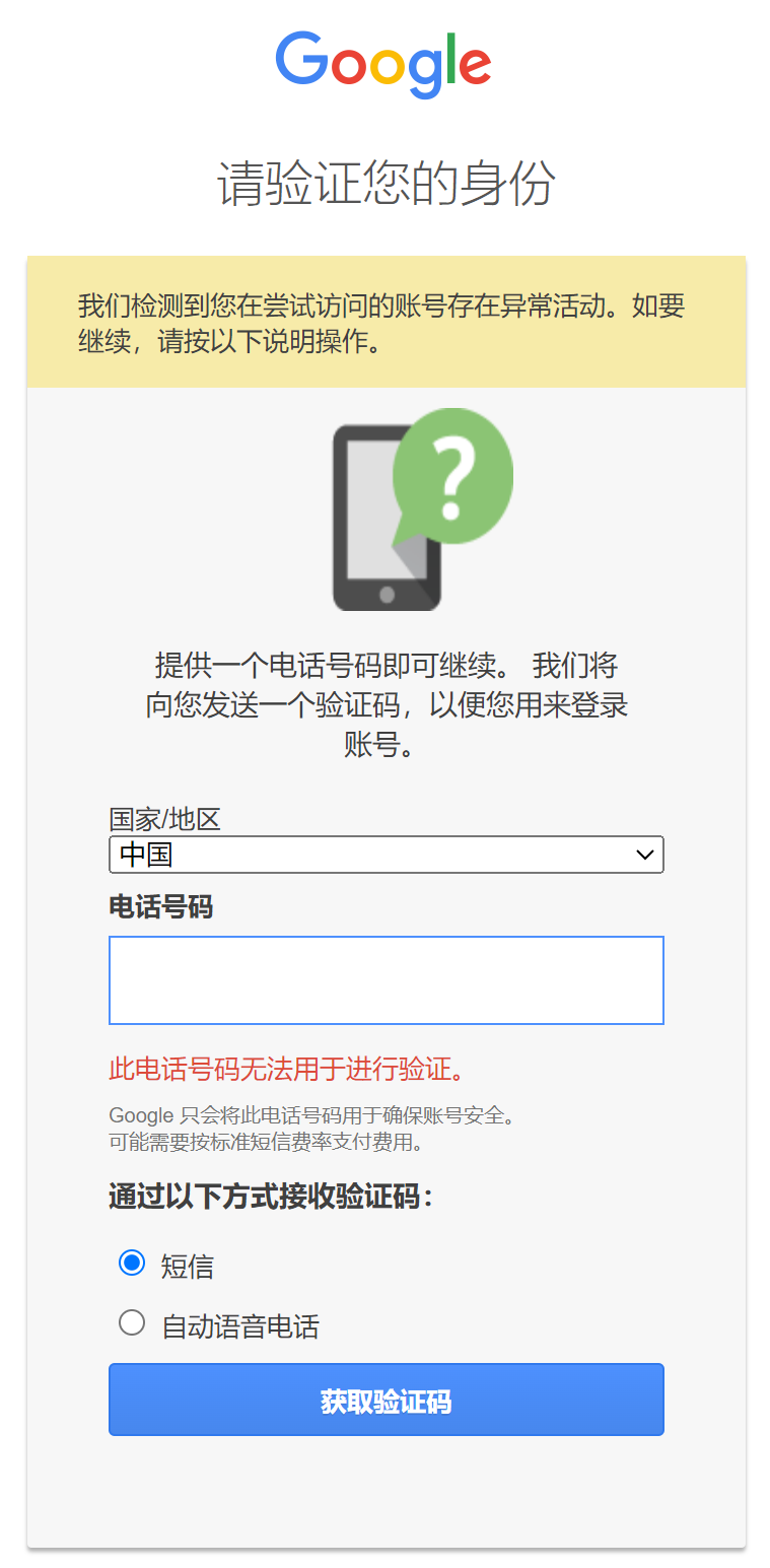 “此电话号码无法用于进行验证”
