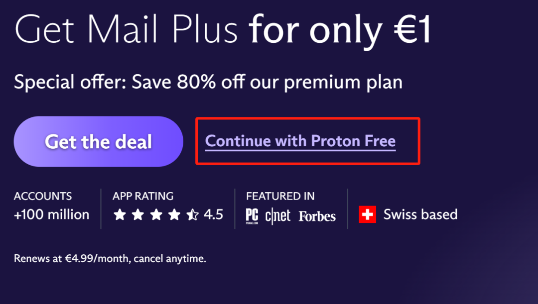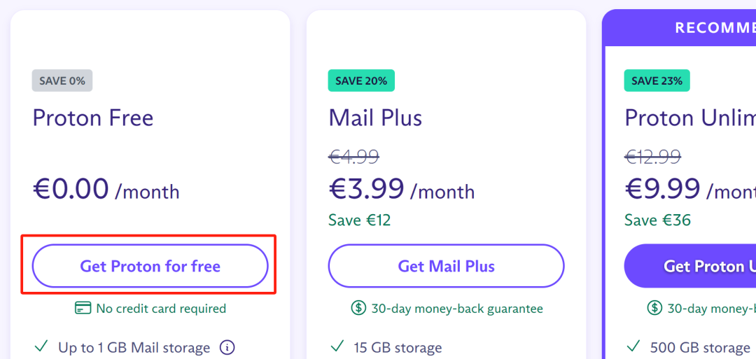 2、打开Proton官网(https://proton.me/),点击右上角Create a free account,随后点击Get proton fo free,继续选择continue with proton free。