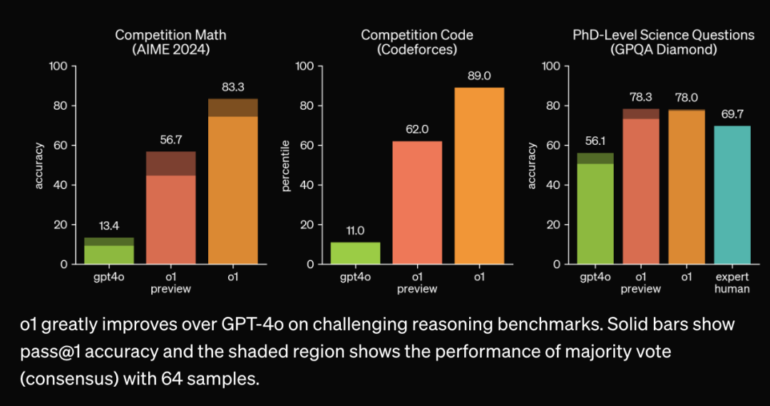 与以前的科学、编码和数学模型相比,o1 模型可以推理复杂的任务,解决更难的问题。