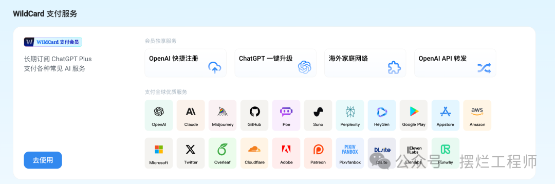 OnlyFans、Patreon、ChatGPT Plus、Claude Pro、Luma、Poe、Coze、GitHub 等这种订阅性质的网站等不支持内地借记卡、信用卡给海外服务支付,可以借助wildcard 虚拟卡解决。
