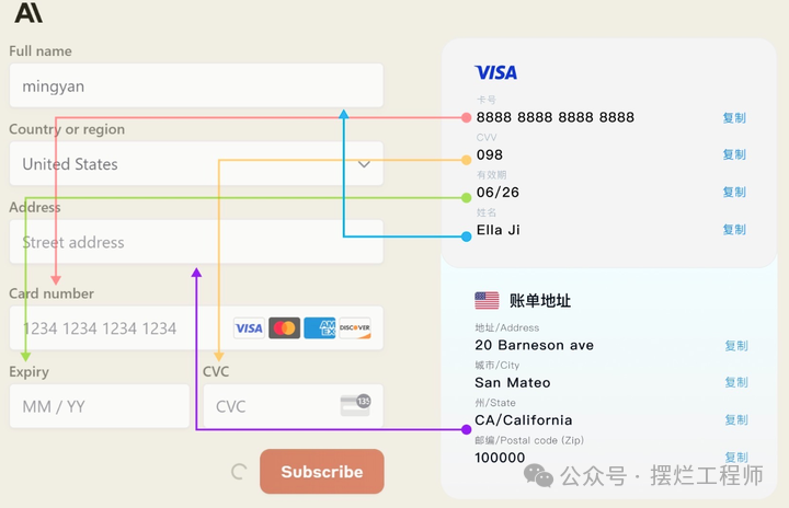 以下是 ChatGPT 和 Claude 的绑卡流程,几乎所有海外需要绑卡支付的流程都是一致的!