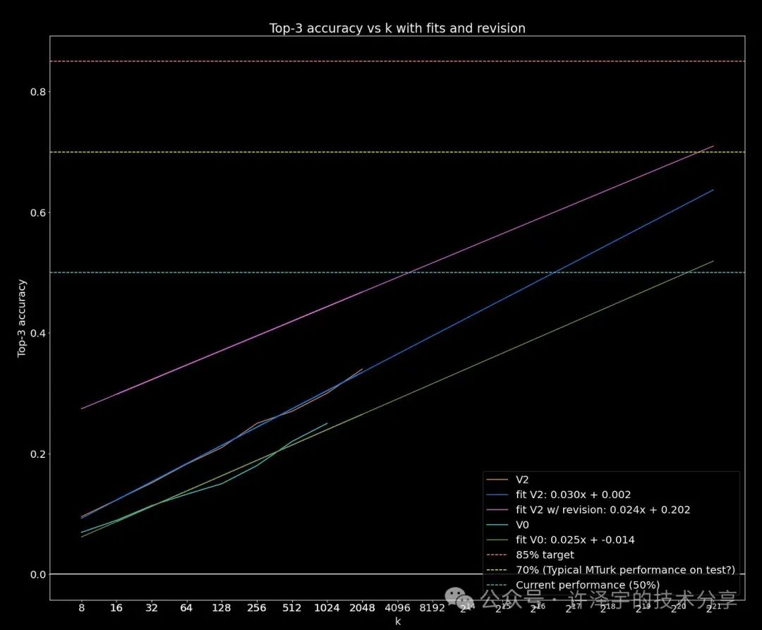 通过观察任何 O(x^n) 的暴力搜索,你也会看到类似的指数扩展曲线。实际上,我们知道至少50%的 ARC-AGI 可以通过暴力搜索和零 AI 方法解决。