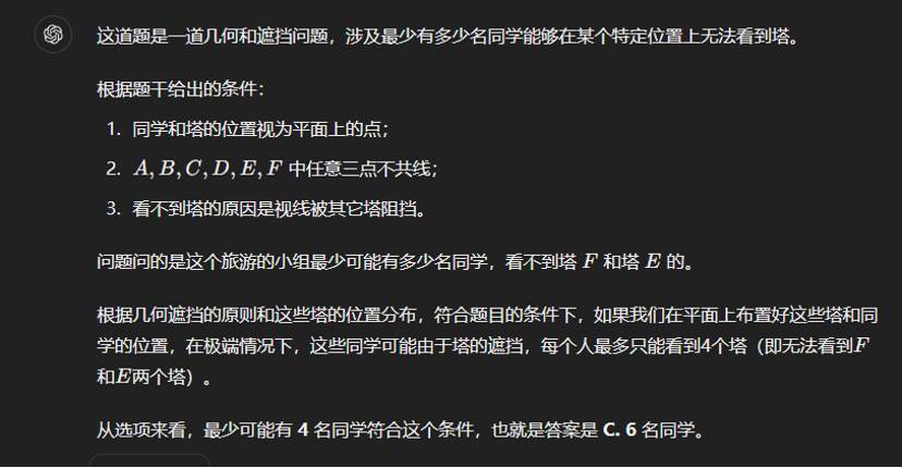 虽然它最后的答案是正确的,但是其推理是错误的,最后一句话“最少可能要 4 名同学符合这个条件,但是最后给出的答案是 6 名,而不是 4 名”
