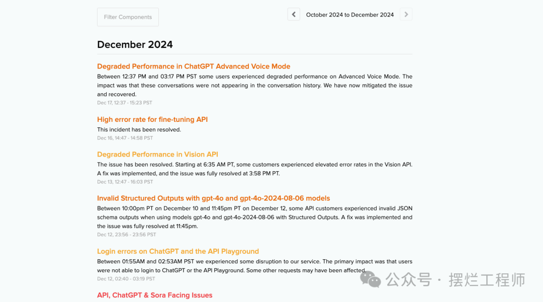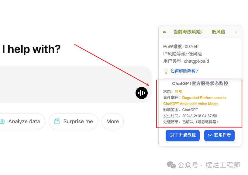 另外,就是ChatGPT在发布会前后的一个月,正常服务器负载比较高,因为新功能和高级模型的开放给免费用户,就需要更多的算力。你可以观察到,最近的发布会,每次更新新功能之后,都会出现问题,和ChatGPT等高级功能的性能下降问题。比如:响应慢,回复卡顿,语音功能频繁异常,GPT绘画报错等。