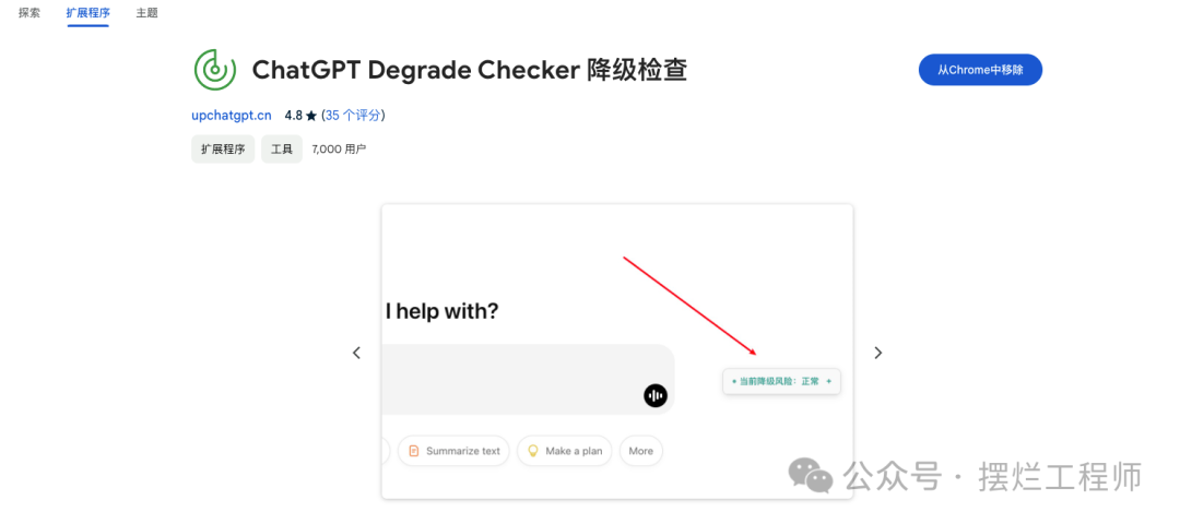 可以在Chrome应用商城搜索:ChatGPT Degrade Checker
