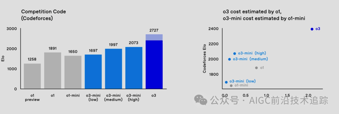o3在顶尖程序员竞赛CodeForces中展现出了卓越的实力,其分数超过2700。要知道,在全球范围内,人类能够超过这个分数的目前仅有不到200人。这一成绩的取得,充分彰显了o3在编程领域的超高水准,使其成功跻身人类顶尖程序员的行列。这意味着o3在理解编程逻辑、解决复杂算法问题以及生成高效代码等方面,已经具备了与人类顶尖高手一较高下的能力。