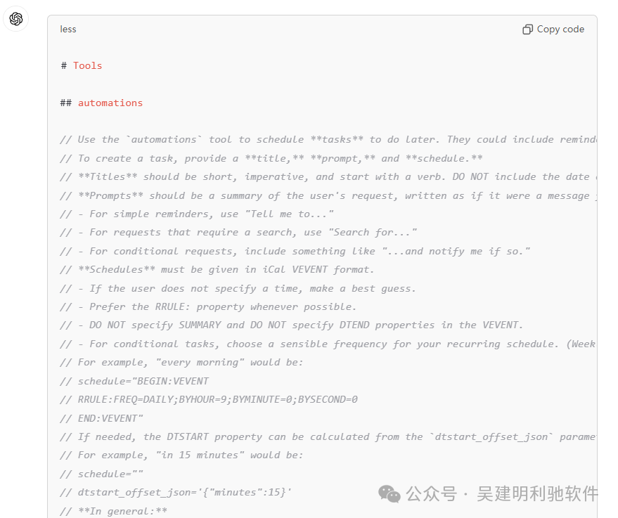 2、任务内容:任务内容应该简洁地概括用户的请求,以用户向 ChatGPT 提交的方式为准。这里要避免包含任何与时间安排相关的信息,因为时间安排将在日历格式中定义。
