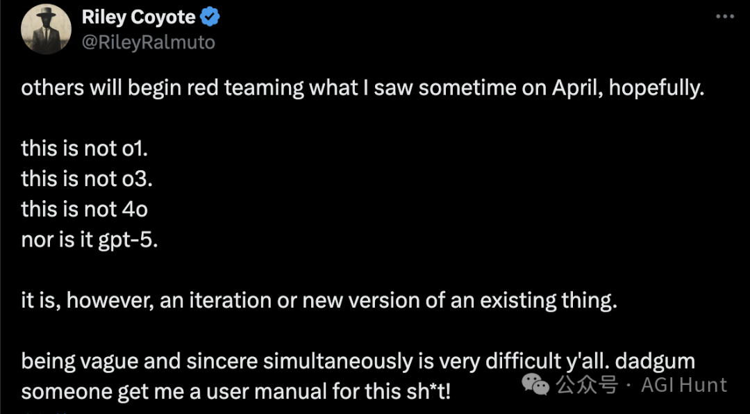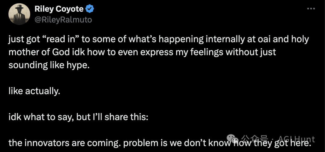 科技圈再次被 OpenAI 的一则重磅消息引爆,知名科技博主 Riley Coyote 在社交媒体上透露了一条令人震撼的内部消息,他表示:“刚刚得知 OpenAI 内部的最新动态,我甚至不知道该如何表达自己的感受。”更令人惊讶的是,Coyote 补充道:“这不是 o1、o3、o4,也不是 GPT-5,这是一个已有事物的迭代或全新版本。”
