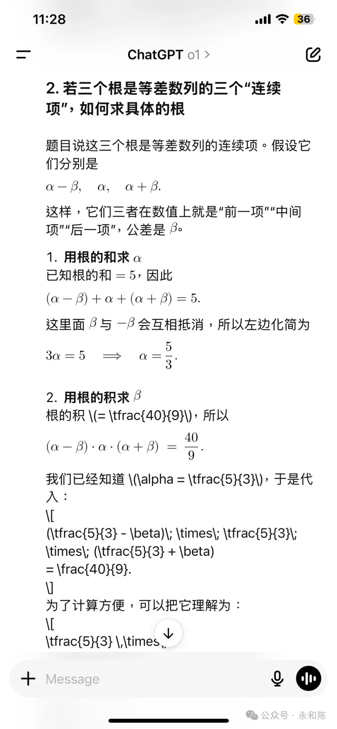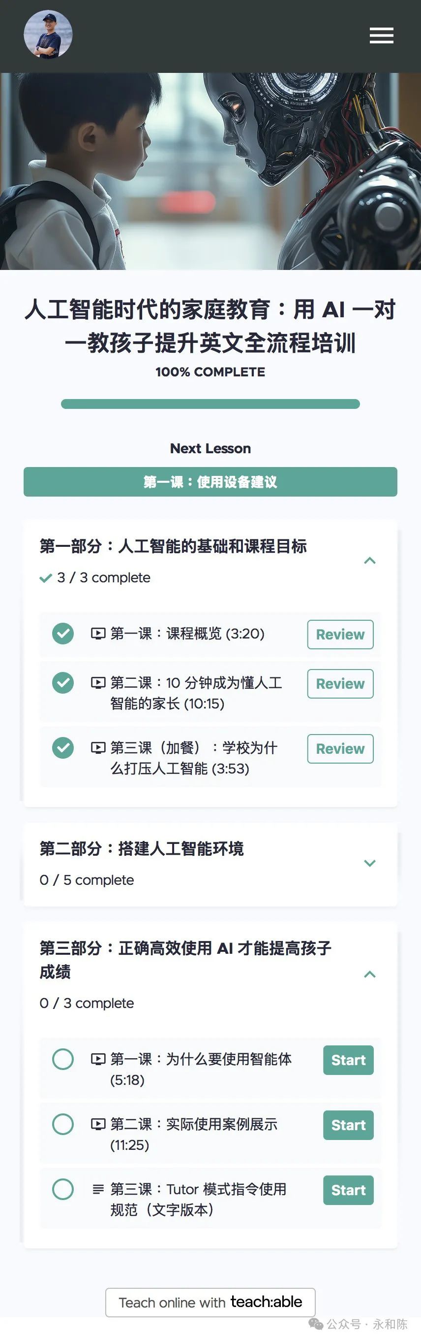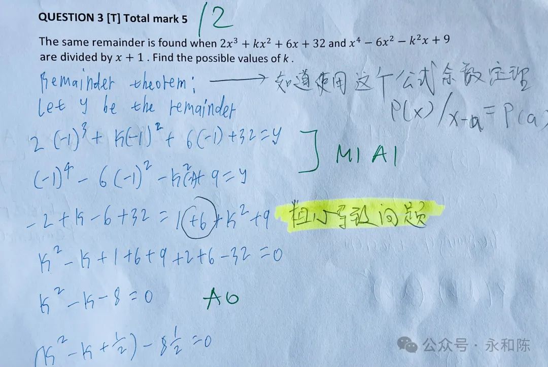 昨天晚上参加老大学校的 Parents' Night,学校专门跟家长解释大学申请的问题。老师特别强调了一点,再过9 个月,就是今年的 10 月份,就可以开始大学申请了。其实也不是担心儿子没有准备好,是我担心儿子的数学能否达到他期望的美国顶尖大学的水平。因为他心仪的学校都是顶尖的理工类,这些学校对数学的要求自然是很高的。儿子自己其它学科都不担心,只是告诉我数学难度比较大。就剩下几个月了,数学再不拿到 7 分,这申请美国顶尖学校的理想就很难实现了呀。我之所以担心,是因为我不知道儿子在数学上的难点在哪里。毫不惭愧地说,我的数学在大学毕业之后就还给老师了。这些年,还得渣都不剩。我之所以毫不惭愧,因为我相信大多数家长也都是这个情况。反正你也不能笑话我。当然像概率、线性、指数型、正态分布等,这些在商业中常用的,我也没丢掉。于是现在出现一个问题,儿子的数学功课,我就没法辅导了。甚至,我连老师的评语都看不懂。都是简写,好像看医生的药单。因为看不懂,所以我就焦虑了,孩子的数学到底在哪个水平,到底欠缺了什么?青春期的儿子跟父母表达本来就惜字如金,他一直告诉我,都很好。人对于不懂的、未知的,就会脑补,就会想象,这个都很好,到底是多好?在我的建议下,儿子早就用 AI 来指导自己的数学了。而且,他觉得特别有帮助,因为 AI 能够及时指出他在哪些基础的地方有欠缺,当场就给他讲解,然后,再附加几个练习题训练一下。还是得请 AI 帮忙,看看能不能让我分析出儿子的数学到底有多好。于是我把儿子的考试结果翻出来,把儿子做错的这道题,5 分只得了 2 分,拍照,传给 ChatGPT。为了确保我得到最可靠的答复,我还专门选择了 O1 Pro版本。就是那个每个月200美金的订阅费,智商达到139的,博士水平的版本。O1 Pro 思考了1 分钟零 6 秒之后,给出了逐步解答。但是不耽误,我知道了它的框架,就是使用这个余数定理来解题的过程。这样,我再去看儿子的解题过程,我就知道了他没有得满分的原因。其实当初儿子给我解释这道题的时候,就明确说过他粗心了。现在我知道问题在哪里了,我就狠狠的在试卷上做了个标注!我决定挑战当时儿子觉得最难的题目。7 分的题,只得了 1 分。我等儿子放学回来,看看他对 AI 的解题思路有什么看法。因为只要儿子的基础没问题,剩下的就是锻炼解题思路。虽然我依然看不懂定理或者公式,但是有 AI 这个博士级别的“家教”在手边,我觉得踏实了很多。不管问题多难,我都有最聪明的 AI 辅导孩子的功课。我感觉,他们的数学,解题思路并不难,只要把知识点用对了,得高分是是不难的。我的信心,就来自于我花了这半天时间,在 AI的帮助下,搞懂了他们的数学题到底是考什么的。在这个视频里面,我分享了我如何帮助我家老大提高英文的故事,引起了很多家长的兴趣。你看看视频分享次数和评论个数就知道了。于是在去年 11 月份,我开发了一门培训录播课,专门教给家长们如何用 AI 帮助孩子提高功课。在做这门课的过程中,我和多位家长一对一交流,在第一线看到了没有技术的妈妈们在哪些地方卡住了,然后逐个找到了破解的方法。目前,这门课已经打磨了一个多月了,我觉得课程本身和我的授课方法已经成熟,可以大规模推广,去帮助更多的家长了。下面是课程的部分列表。还有更多精彩的课程马上会上线。比如,从一年级到十二年级,针对每个学科的学习指令。比如,培养孩子批判性思维、系统思维、逻辑思维的学习指令。比如,培养孩子组织能力、表达能力、领导能力、情商的家庭场景设计和指令。人工智能时代,AI 会替代掉很多知识型的岗位,但是,人类独特的创造力和思考能力,是不会被替代的。这门课程,不但是帮助孩子们在学校功课学得更好更轻松,更加是让孩子们提前掌握在 AI 时代的生存能力。所以,如果你想给孩子找到一个随叫随到,而且达到博士水平的家教,加我微信。加微信请注明“AI 课程”。否则可能不通过。我们一起,帮孩子把 AI 用起来,成为 AI 时代的主人。