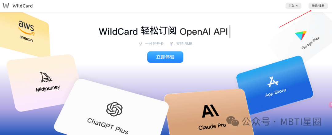 1、访问WildCard官网,并点击右上角的“登录/注册”按钮。
