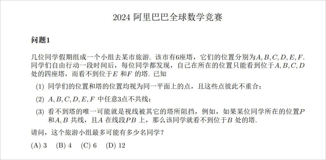 就是全球数学竞赛的题目,可惜的是目前 o1 还没有看图能力,我只能选一道纯文字的